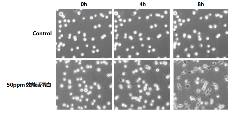 结论:效能活蛋白较对照组显著促进细胞铺展,增强细胞活力